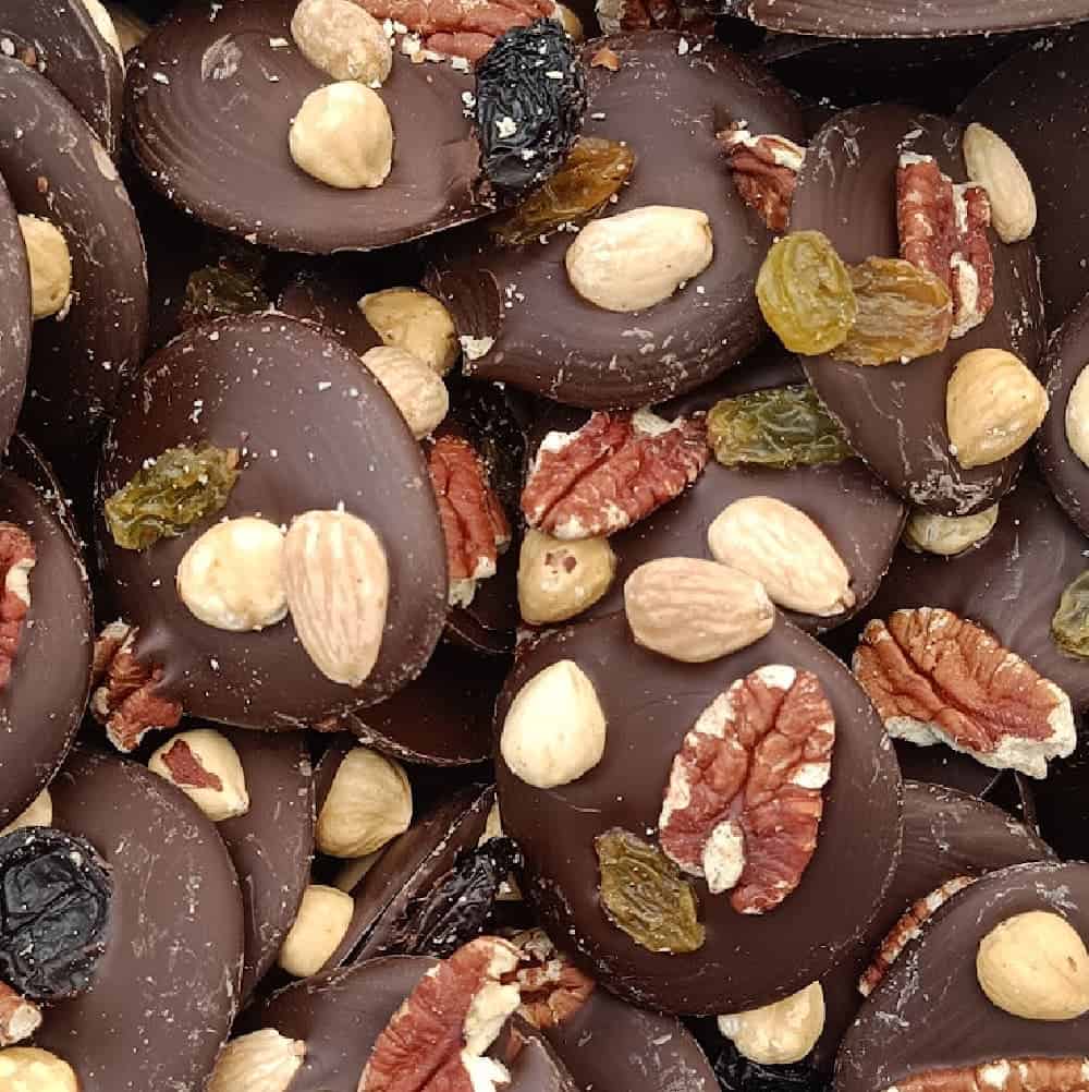 Ces gourmandises luxueuses pour étudiants combinent du chocolat noir riche avec des noix et des raisins secs – une gourmandise classique de qualité supérieure.
