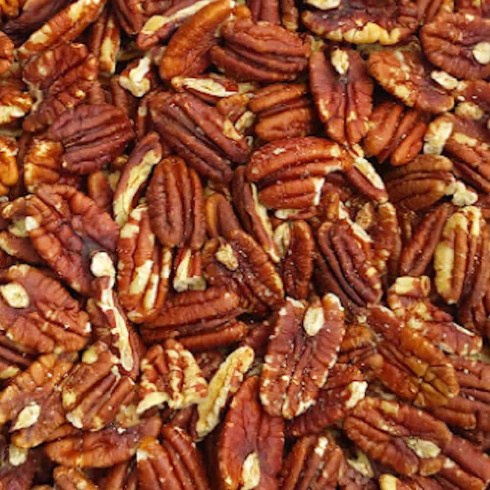 Les noix de pécan grillées sans sel sont croquantes et légèrement sucrées, au goût prononcé de noix. Grillées à sec dans de l'huile d'arachide, elles sont sans sel ajouté. Idéales comme en-cas sain ou pour agrémenter vos plats.