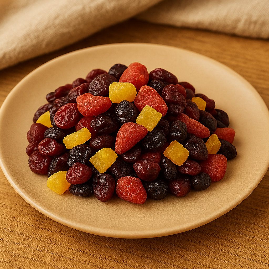 Notre mélange de fruits des bois est une combinaison colorée et fruitée de fruits secs comme les cerises, les fraises, les canneberges, la mangue et les myrtilles. Délicieux en en-cas, pour le petit-déjeuner ou pour accompagner vos recettes de pâtisserie.